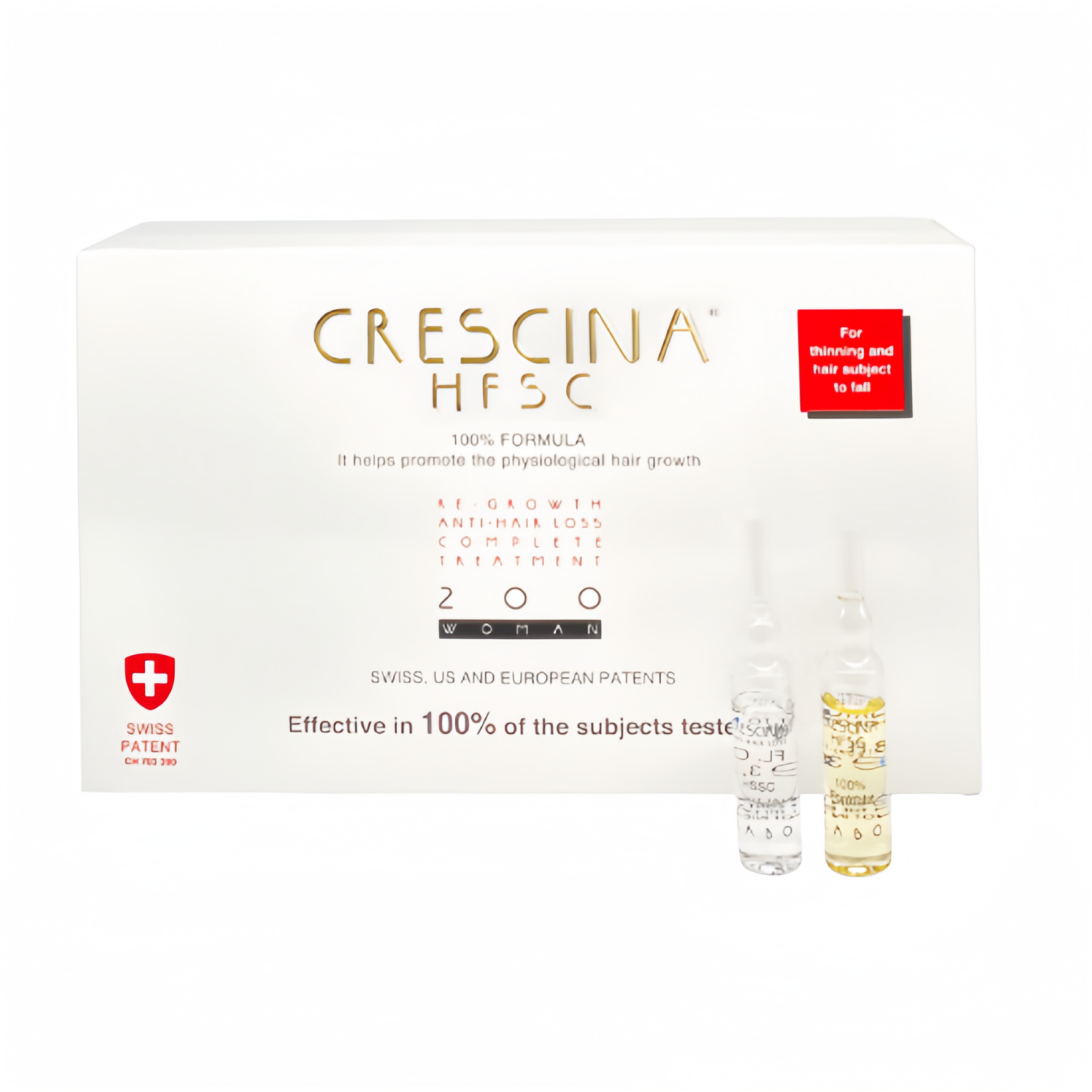 • صممت أمبولات Crescina HFSC 200 لمعالجة مراحل مختلفة من الصلع، المصممة خصيصاً للنساء، بما في ذلك الصلع الوراثي.