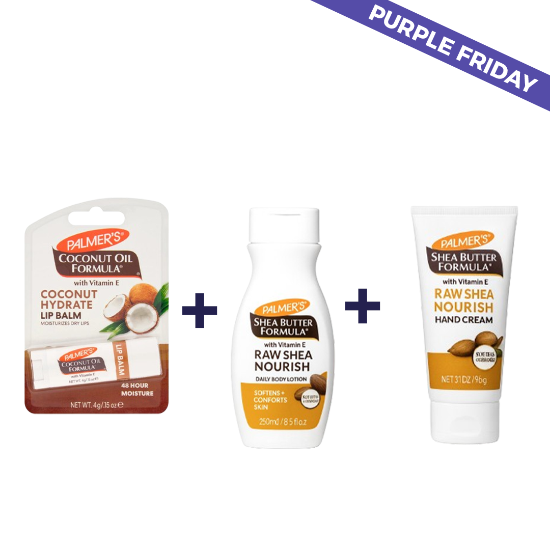 هذا البكج من بالمرز يجمع بين منتجات أساسية للعناية بالجسم واليدين والشفاه: