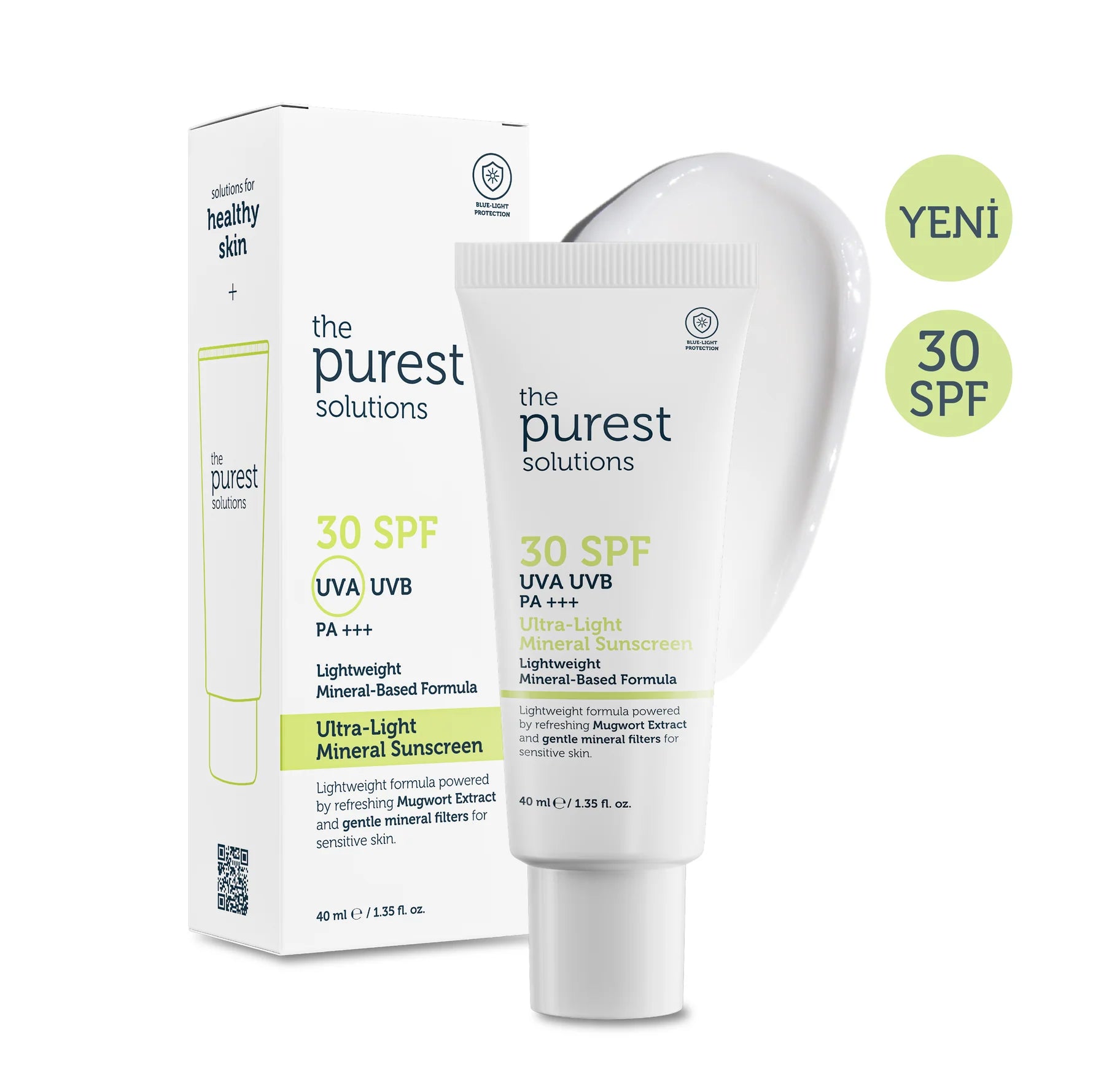 واقي شمس معدني فائق الخفة بعامل حماية SPF 30، مصمّم لحماية البشرة الحساسة من أشعة UVA وUVB والضوء الأزرق، مع المساعدة على تهدئة التهيّج وتقليل الأثر الأبيض، بتركيبة خفيفة غير دهنية ومناسبة للاستخدام اليومي.