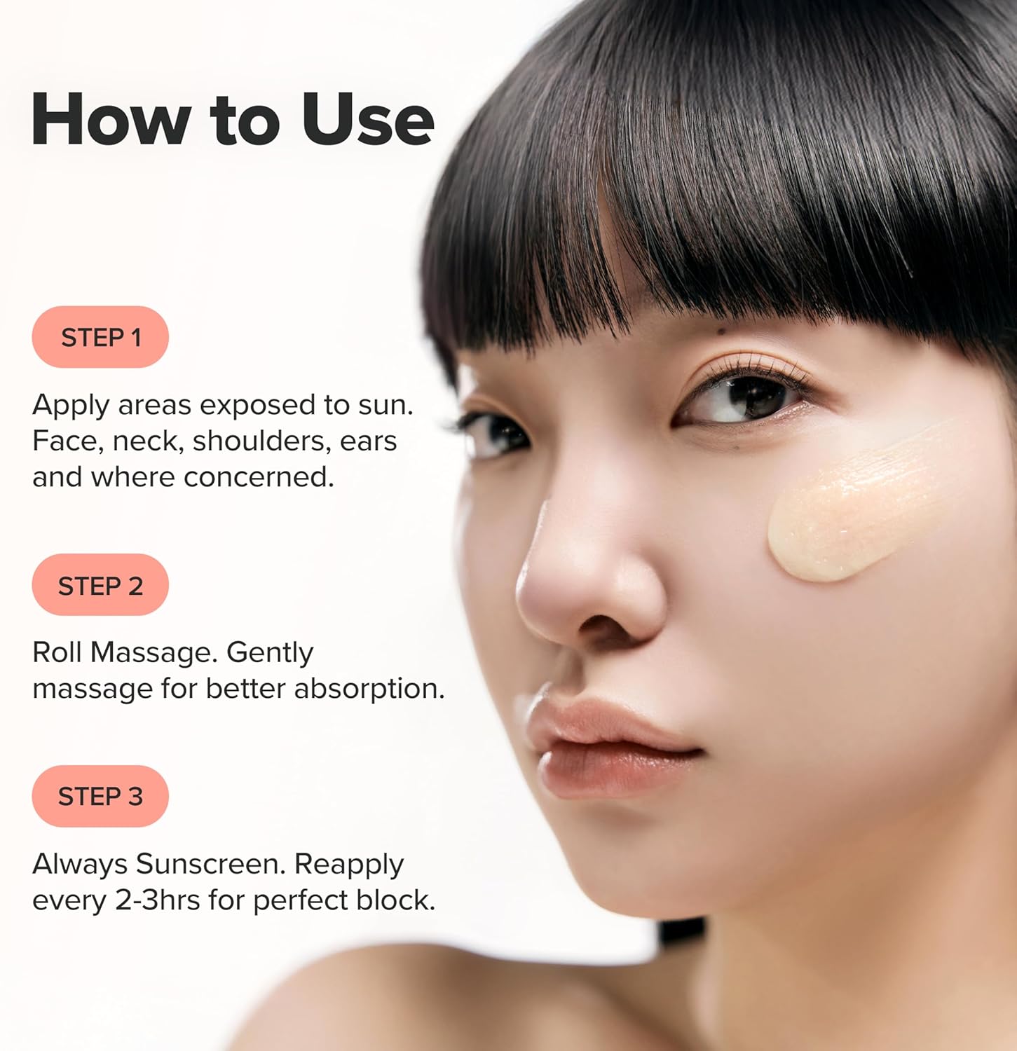ضعيه على بشرة نظيفة قبل التعرض للشمس بـ15 دقيقة. يعاد تطبيقه كل ساعتين عند التعرض المستمر للشمس.