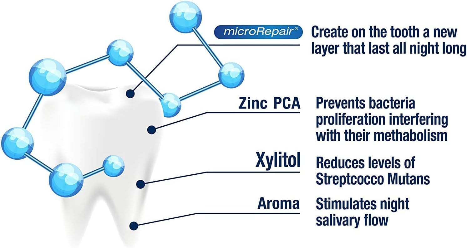 -معجون أسنان مصمم للاستخدام الليلي، يهدف إلى إصلاح وحماية مينا الأسنان من التآكل الليلي ومكافحة نشاط البكتيريا خلال فترة النوم.