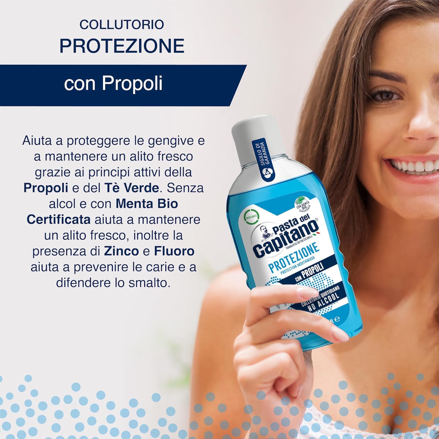 مجموعة متوازنة من المكونات الفعّالة مثل البروبوليس والشاي الأخضر تساعد في حماية اللثة والحفاظ على نفس منعش.