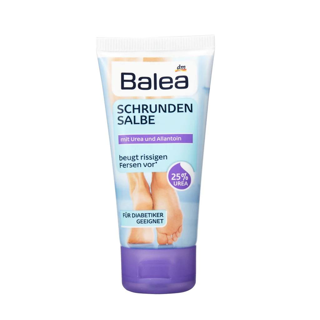Balea Foot Cream contains 25% urea to provide intensive and effective hydration. It treats cracked heels, prevents future cracks, and is ideal for extremely dry and rough skin. Glycerin and allantoin help soften the skin and give it a healthy appearance.
