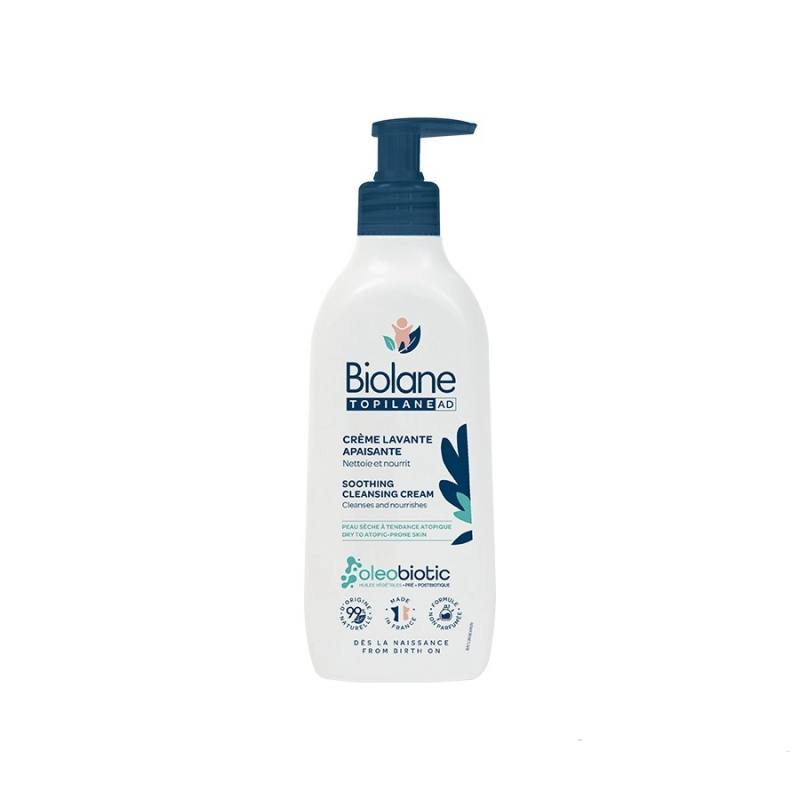 Biolane Soothing Cleansing Cream, intended for children with dry and irritated skin, suitable for face, body and even hair, gently cleanses without drying.