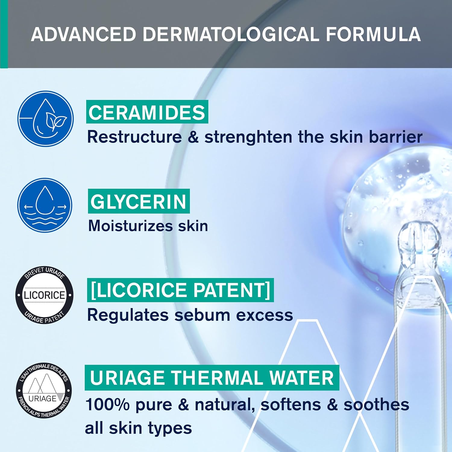 • Thermal ureage water: moisturises and soothes the skin.